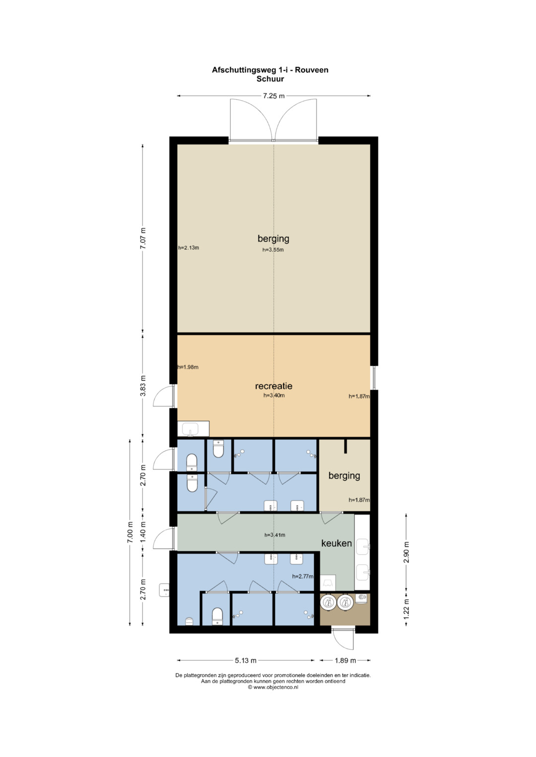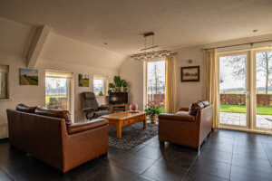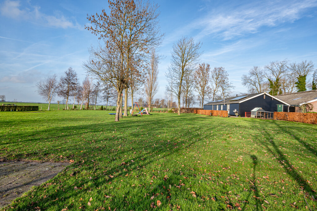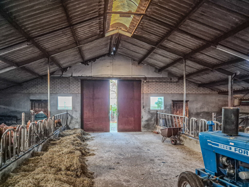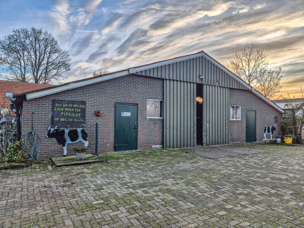 De veestal biedt ruimte aan diverse gebruiksfuncties en is ingericht met plaats voor circa 30 stuks jongvee, werkplaats, garage, berging en kantoorruimte. Het recreatiegebouw is gelegen achter de veestal. Dit gebouw is voorzien van sanitaire voorzieningen, waardoor het geheel veelzijdige gebruiksmogelijkheden biedt. Het aangeboden perceel heeft een oppervlakte van circa 4.900 m², waarbij de exacte oppervlakte nog nader door kadastrale inmeting zal worden vastgesteld. Tevens bestaat de mogelijkheid het terrein uit te breiden, door aankoop van de direct aanliggende agrarische grond, circa 5.830 m². Het daadwerkelijke oppervlakte wordt verrekend tegen een m²- prijs van € 15,00 per m².