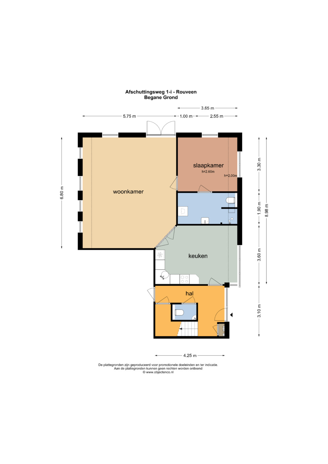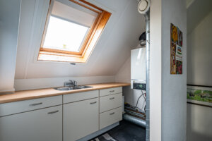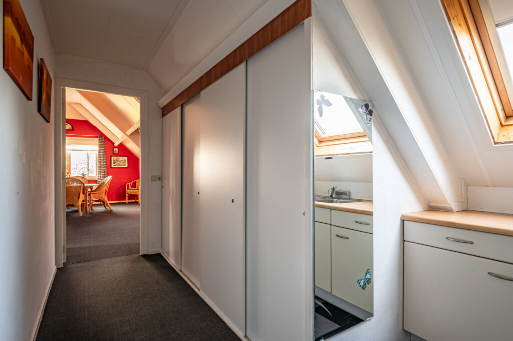 Het levensloopbestendige woonverblijf bevindt zich op de begane grond en is ingedeeld als volgt: een ruime hal v.v. trapopgang en toilet, een sfeervolle woonkamer met open keuken, een comfortabele slaapkamer en een moderne badkamer. Op de eerste verdieping bevindt zich een royale open ruimte met een inpandige keuken. Deze verdieping biedt diverse mogelijkheden voor herindeling, bijvoorbeeld voor het realiseren van meerdere slaapkamers of een extra werkkamer.
