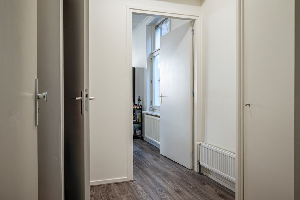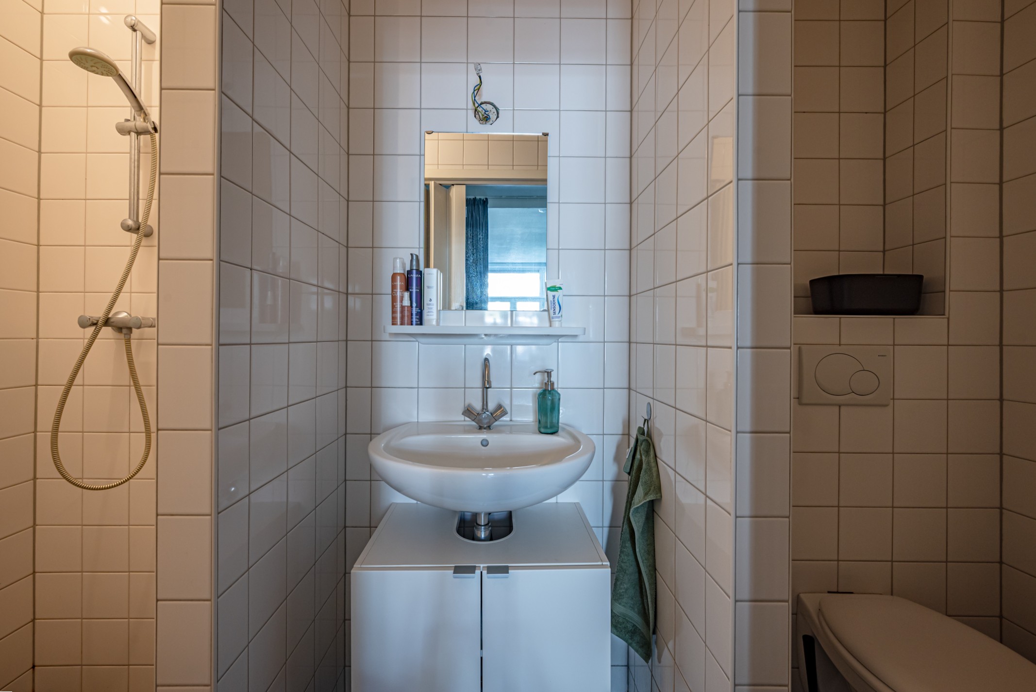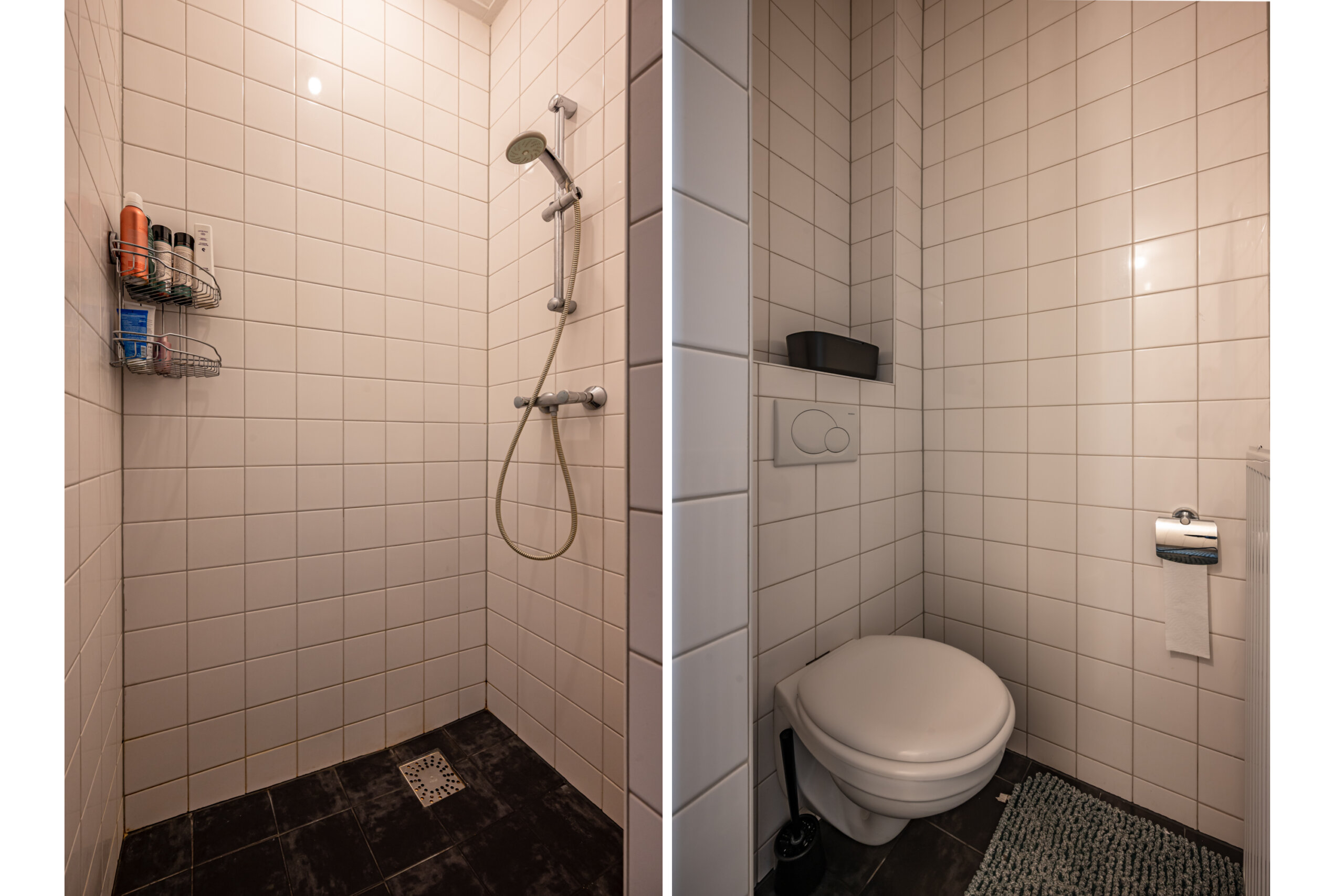 Via de gedeelde trapopgang bereikt u op de eerste verdieping uw eigen ingang. De hal ruimte voor garderobe, de meterkast en een praktische waskast voor wasmachine en -droger geeft toegang aan de leefruimte. Een rechte keukenopstellen met aansluiting een fijne woonkamer met grote raampartijen. Gedeeltelijk afgesloten middels muur en gordijn de slaapkamer, met directe toegang tot de badkamer. Deze is voorzien van praktische en nette wastafel, douchehoek en toilet.