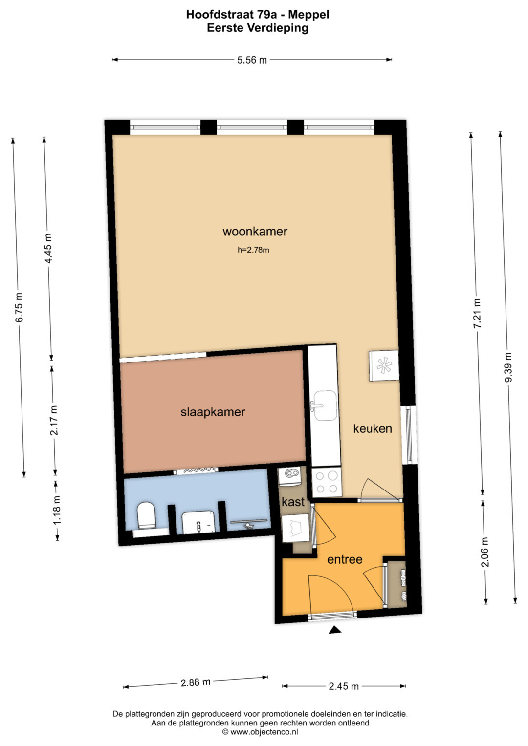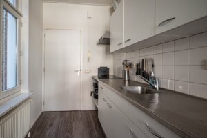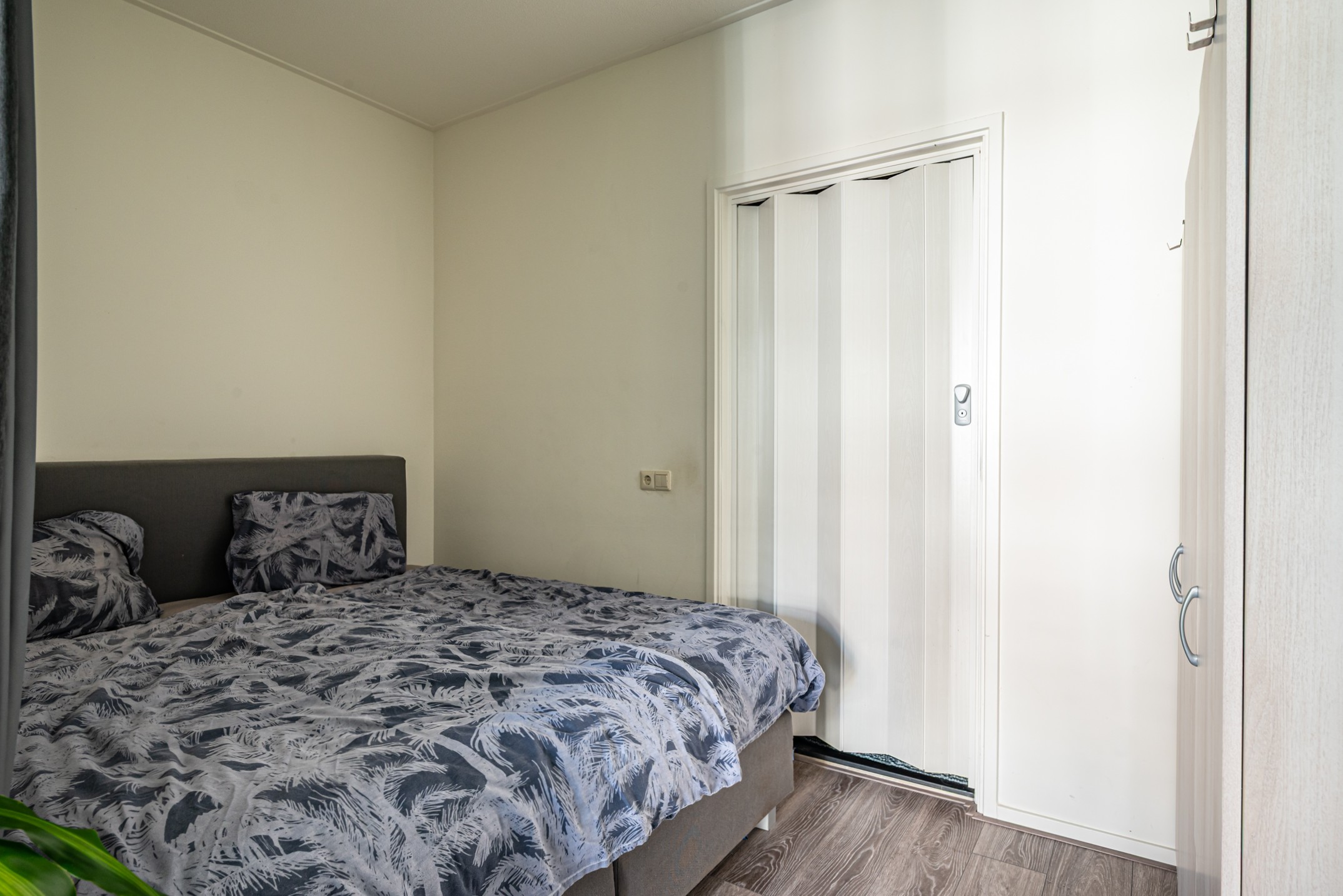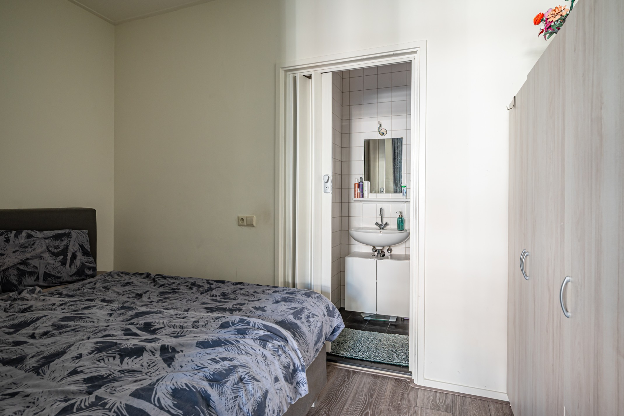 Via de gedeelde trapopgang bereikt u op de eerste verdieping uw eigen ingang. De hal ruimte voor garderobe, de meterkast en een praktische waskast voor wasmachine en -droger geeft toegang aan de leefruimte. Een rechte keukenopstellen met aansluiting een fijne woonkamer met grote raampartijen. Gedeeltelijk afgesloten middels muur en gordijn de slaapkamer, met directe toegang tot de badkamer. Deze is voorzien van praktische en nette wastafel, douchehoek en toilet.