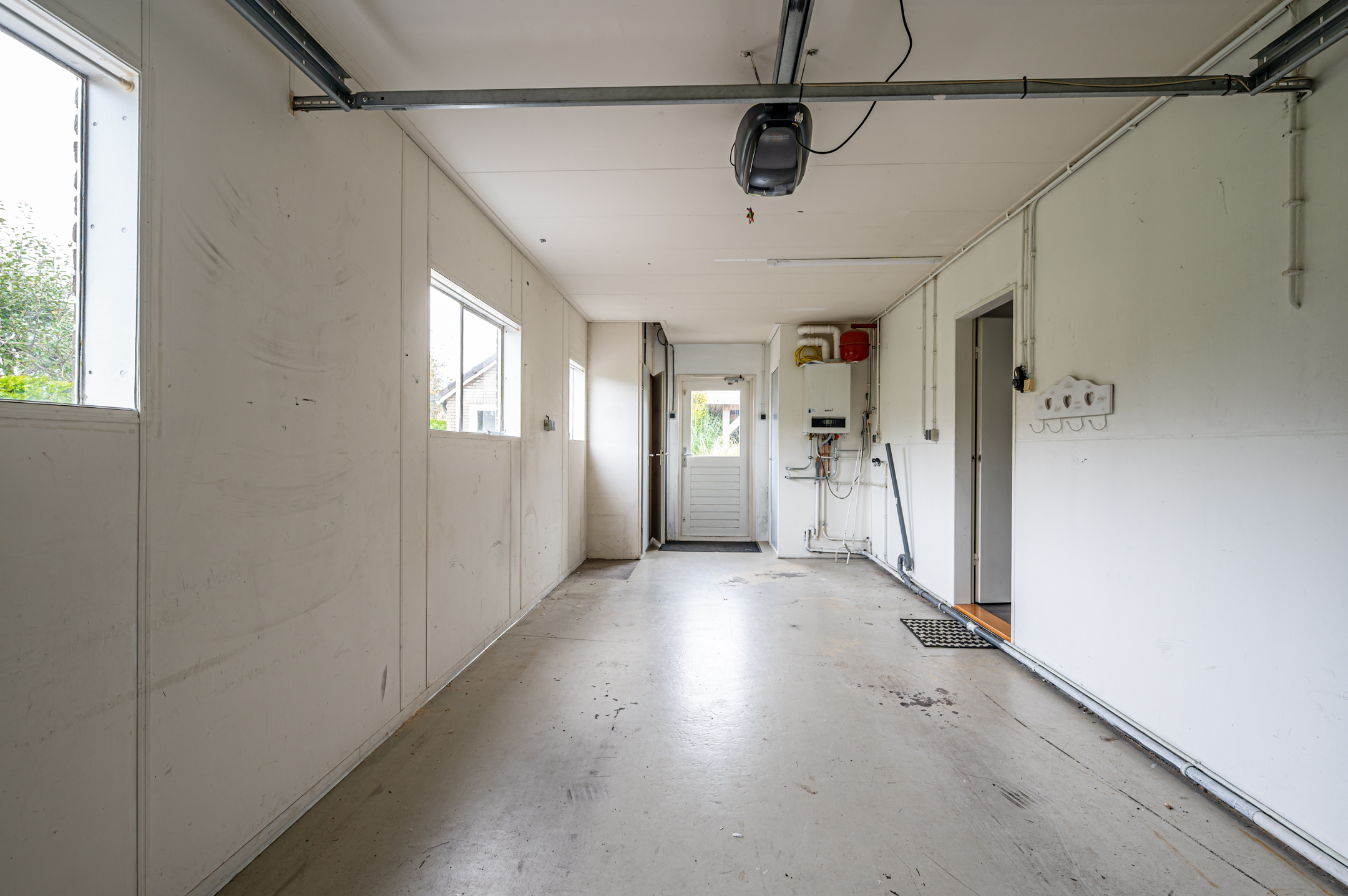 Vanuit de hal is de inpandige garage bereikbaar – een praktische ruimte met een elektrisch bedienbare garagedeur.