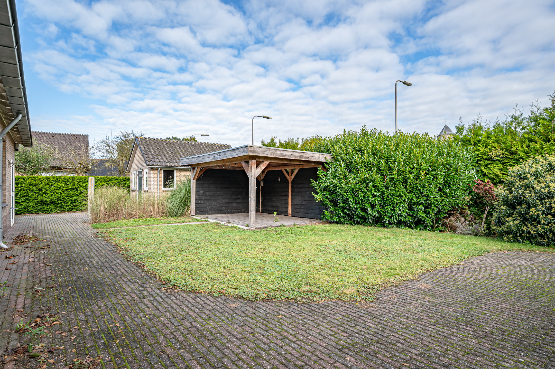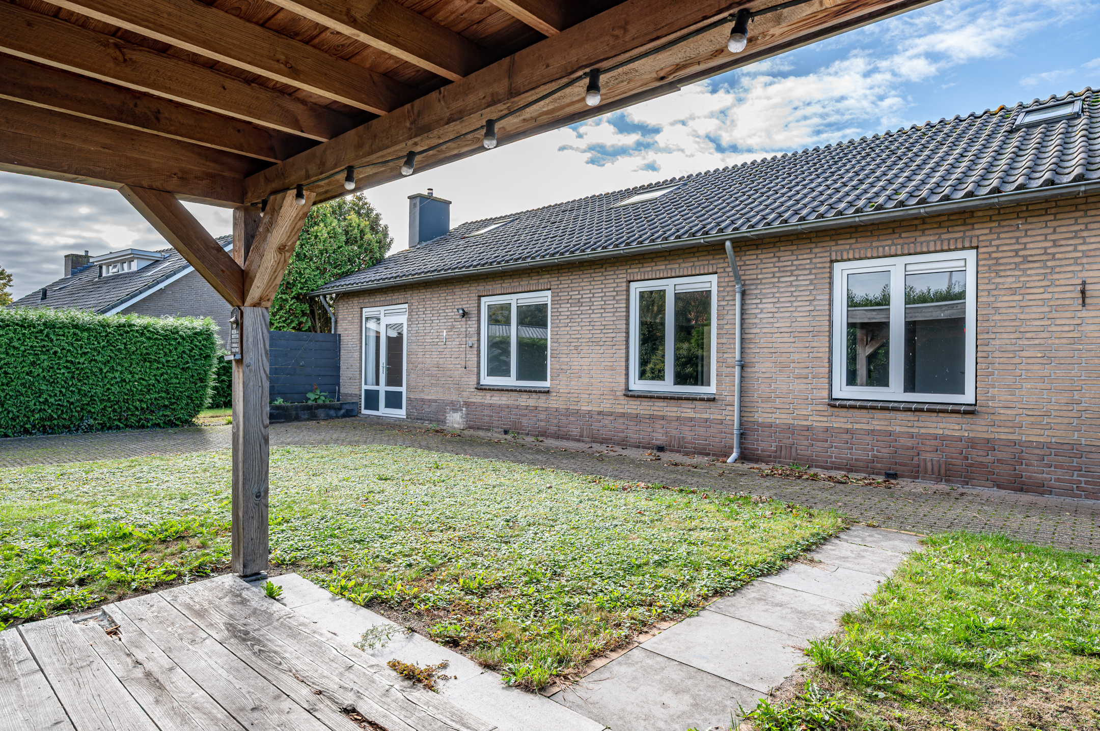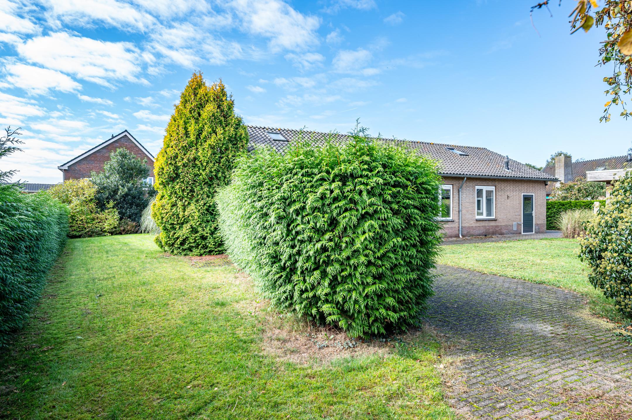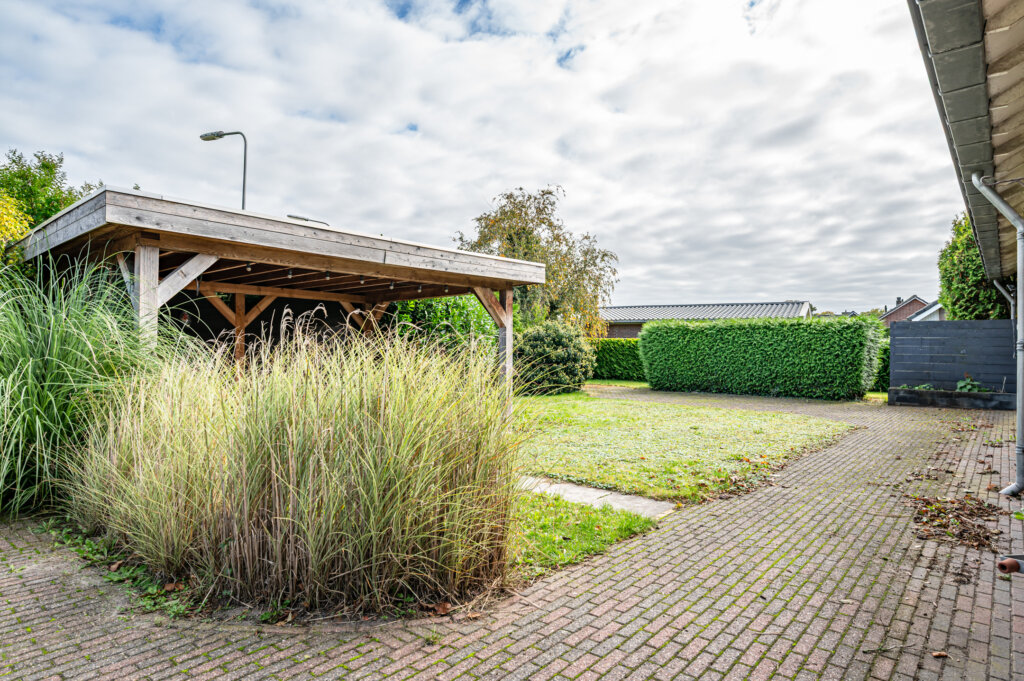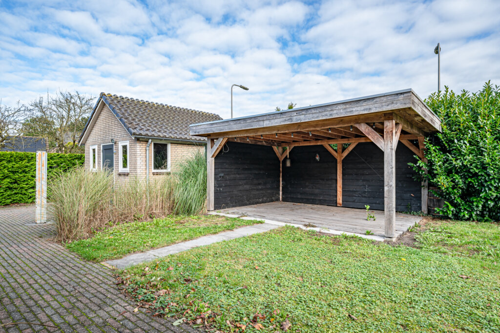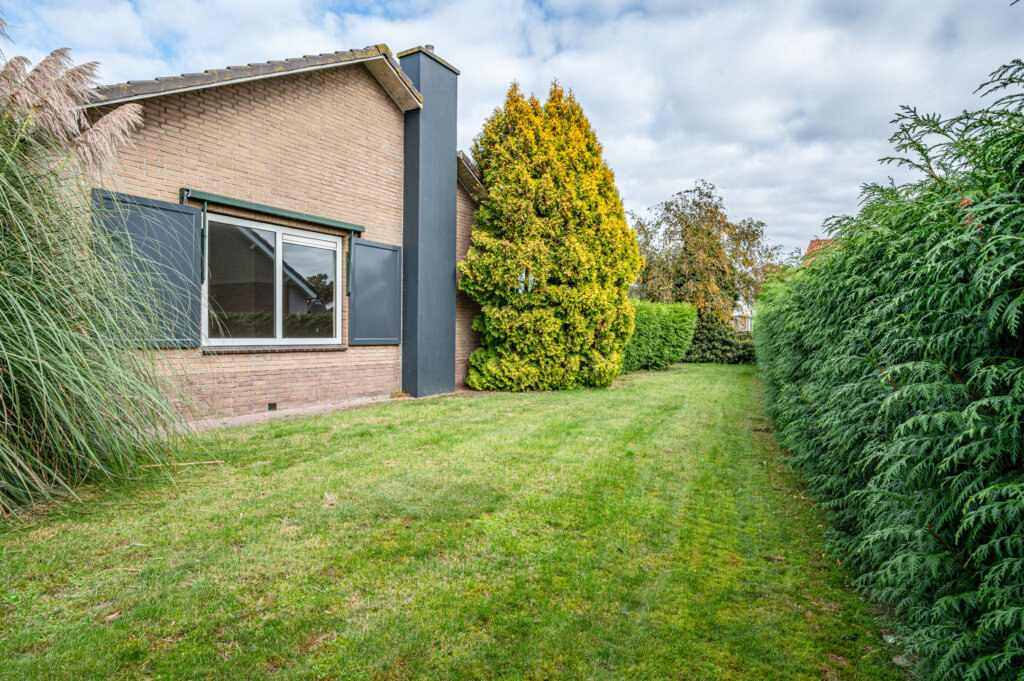 De rondom gelegen tuin biedt volop privacy. Er zijn meerdere zithoeken gecreëerd, waaronder een overdekt terras. Daarnaast beschikt het perceel over een vrijstaande stenen schuur van ca. 3,80 x 4,83 meter – ideaal voor opslag of hobby.