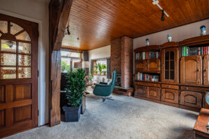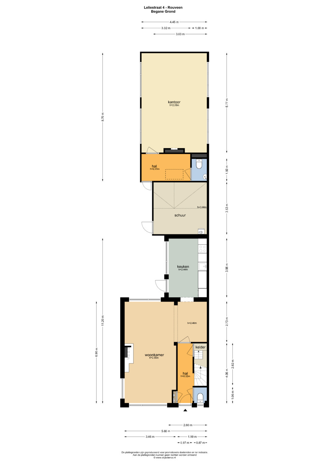 Begane grond: entree/hal met meterkast, toilet, kelderkast en trapopgang naar de verdieping. Ruime doorzonwoonkamer met aansluitend de woonkeuken. Via buitenom is de aangebouwde schuur te bereiken evenals de kantoorruimte. Deze laatste is voorzien van een entree/hal en eigen toiletruimte.