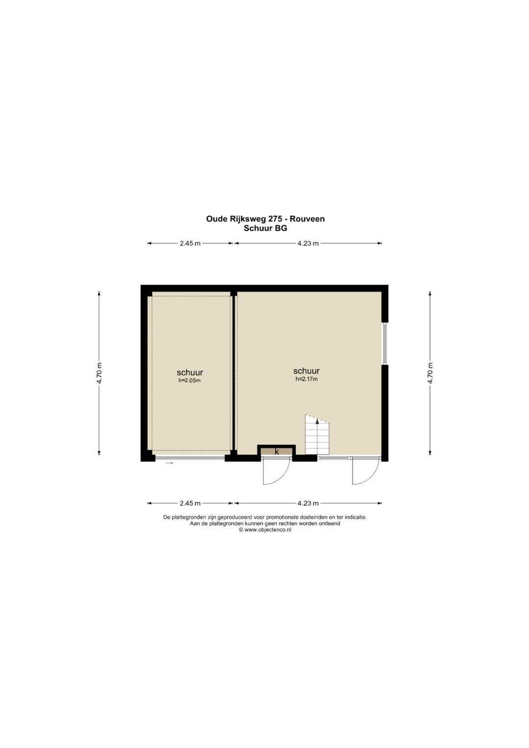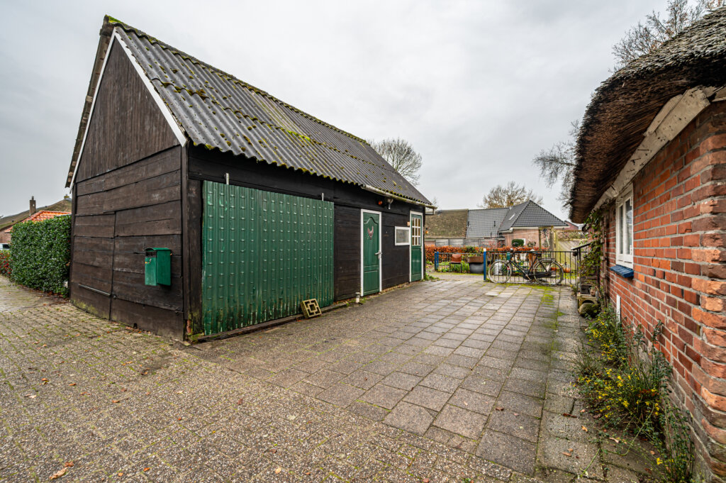 Bij de woning is een vrijstaande, te renoveren, schuur aanwezig. De kavel is praktisch ingedeeld waardoor en rondom de woning voldoende tuin en grond aanwezig is.