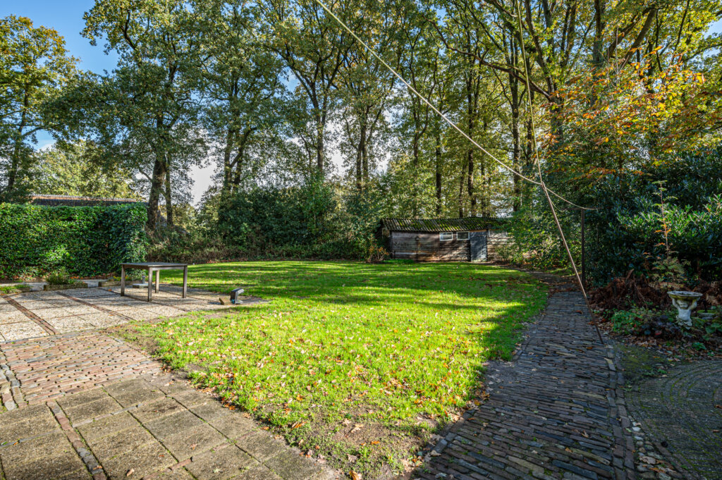 De tuin ligt grotendeels om de woning en is grotendeels in gebruik als gazon. Achter de woning is een afgeschermde zitplek aanwezig, waar heerlijk van de eigen stek kan worden genoten. Rust en harmonie in een groene omgeving!