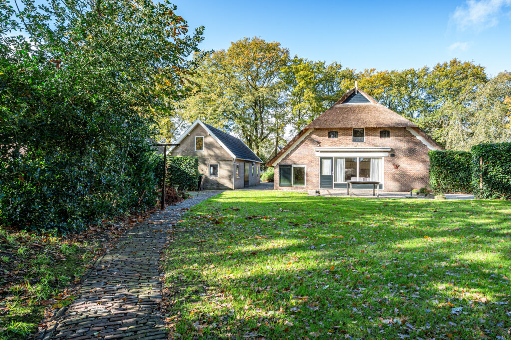 Op één van de prachtigste plekjes van Hees (Ruinen) is gelegen deze vrijstaande, rietgedekte woonboerderij op een kavel van 2067 m².