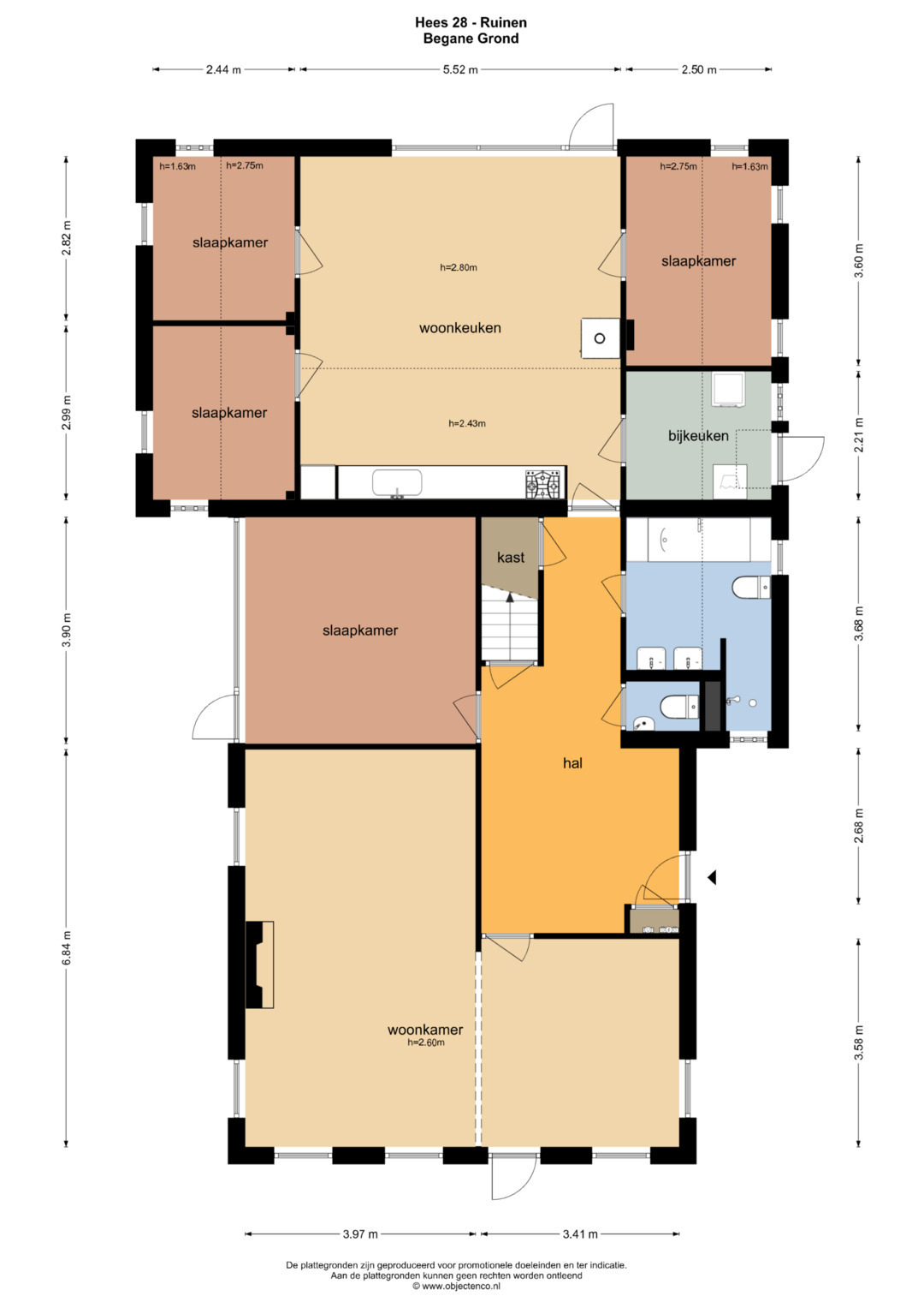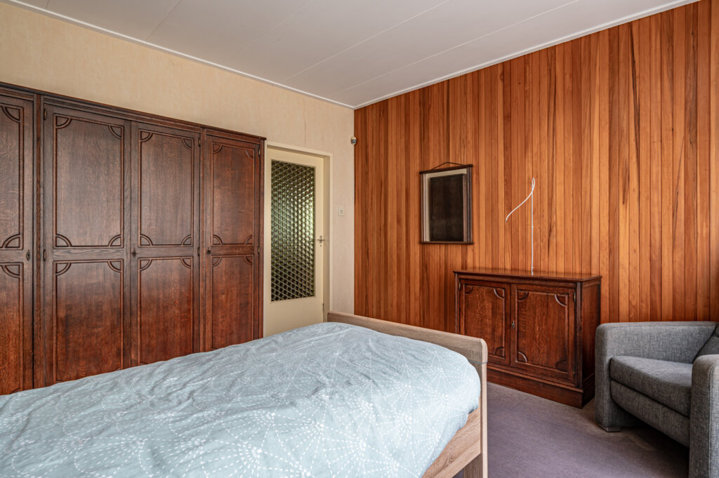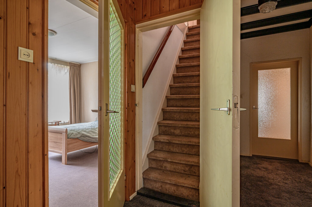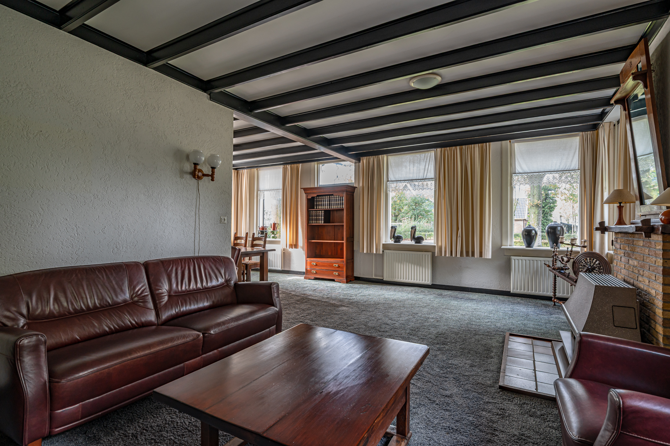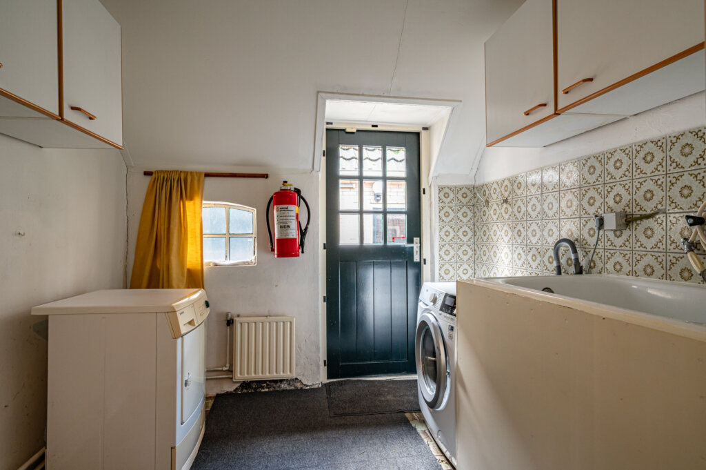 Begane grond: entree in royale hal, met de meterkast en trapopgang; L-vormige woonkamer aan de straatzijde van de woning, met ruimte voor een eet- en zithoek; royale slaapkamer; gastentoilet; badkamer met dubbele wastafel, ligbad, toilet en douchehoek; toegang tot de fijne woonkeuken. Deze ruimte is gelegen aan de achterzijde van de woning, waardoor aansluitend aan de eigen tuin. Door de rechte keukenopstelling en centrale gashaard is er voldoende ruimte voor een aangename zitplek. Aan weerzijden bevinden zich 3 kleinere (slaap)kamers, geschikt voor diverse doeleinden óf bij de ruimte te betrekken. De bijkeuken dient als achteringang en biedt ruimte aan o.a. de wasmachine.