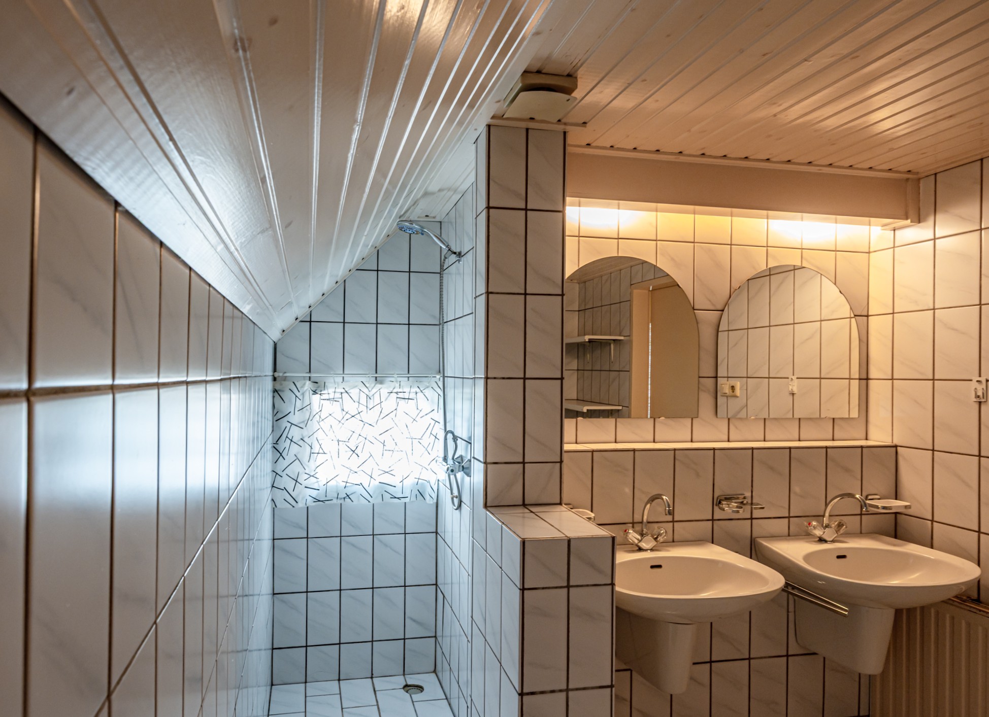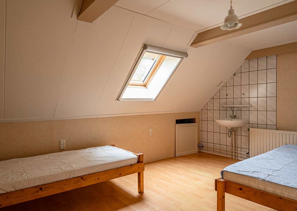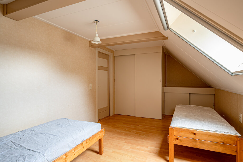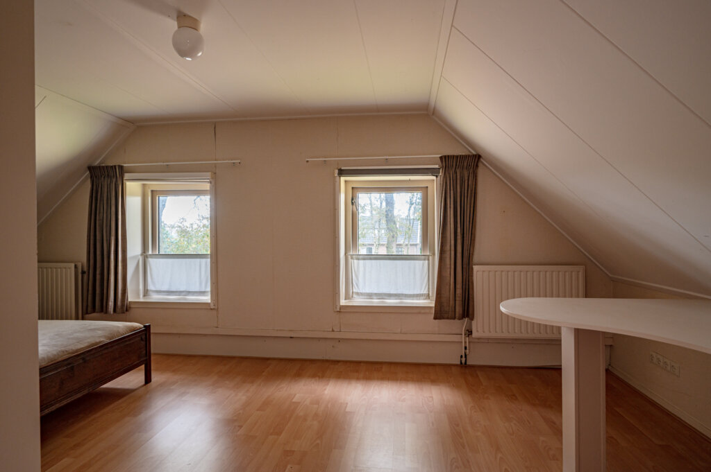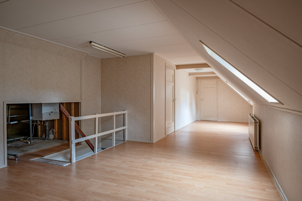 De verdieping is ingedeeld met een royale overloop, 2 slaapkamers en een bergzolder, waar de oude gebinten nog in zicht zijn. Een herindeling van deze verdieping zou het creëren van extra slaapvertrekken mogelijk maken!