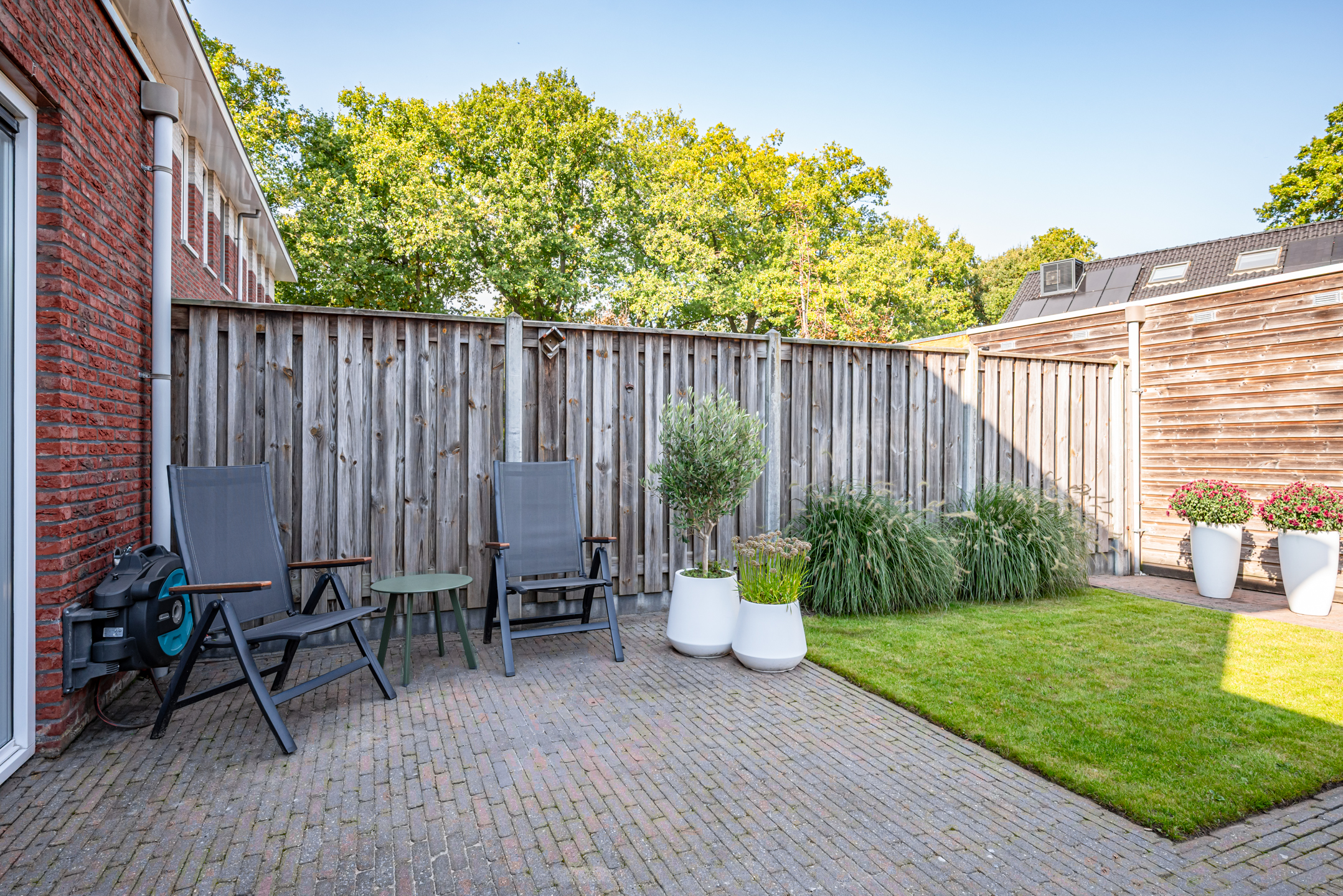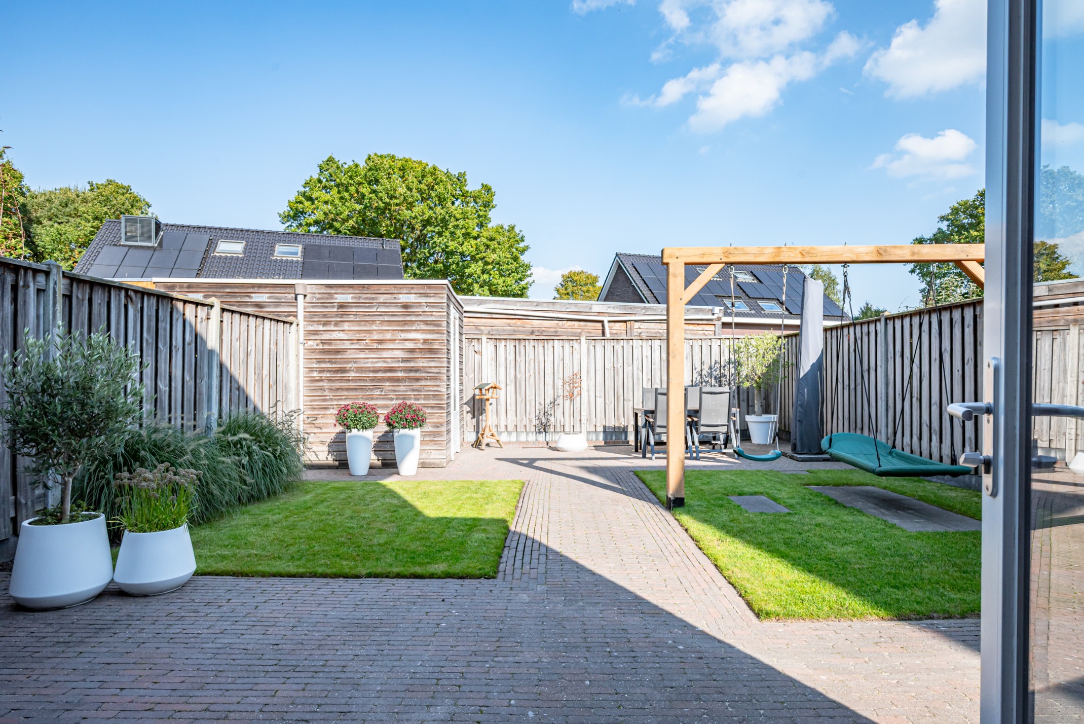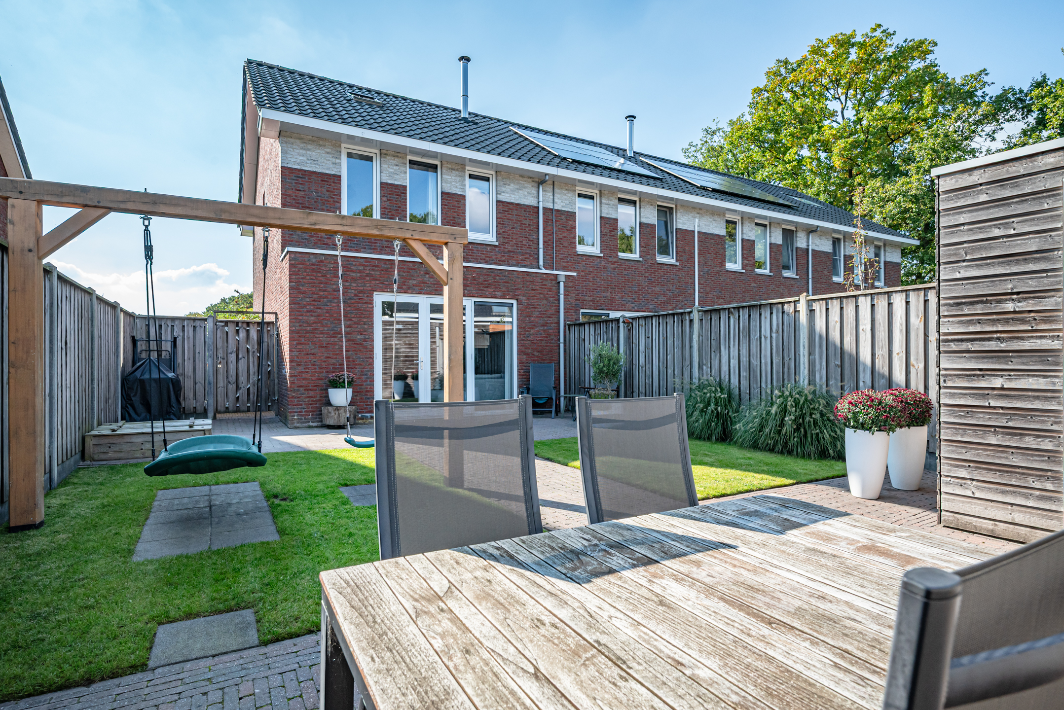 Naast een keurig afgewerkte binnenzijde, kunnen we ook de buitenruimte als geheel goed verzorgd aanmerken. Vanuit de woonkamer door de dubbele tuindeuren, via de eigen opgang vanaf de Hooikampen óf via de achterom is de achtertuin te bereiken. Voorzien van 2 terrassen, gedeelte gazon, speelvoorzieningen en een praktische, houten tuinberging een heerlijke tuin! De ruimte voor en naast de woning is eveneens keurig als tuin ingericht, maar kan tevens de mogelijkheid bieden voor een eigen parkeerplaats!