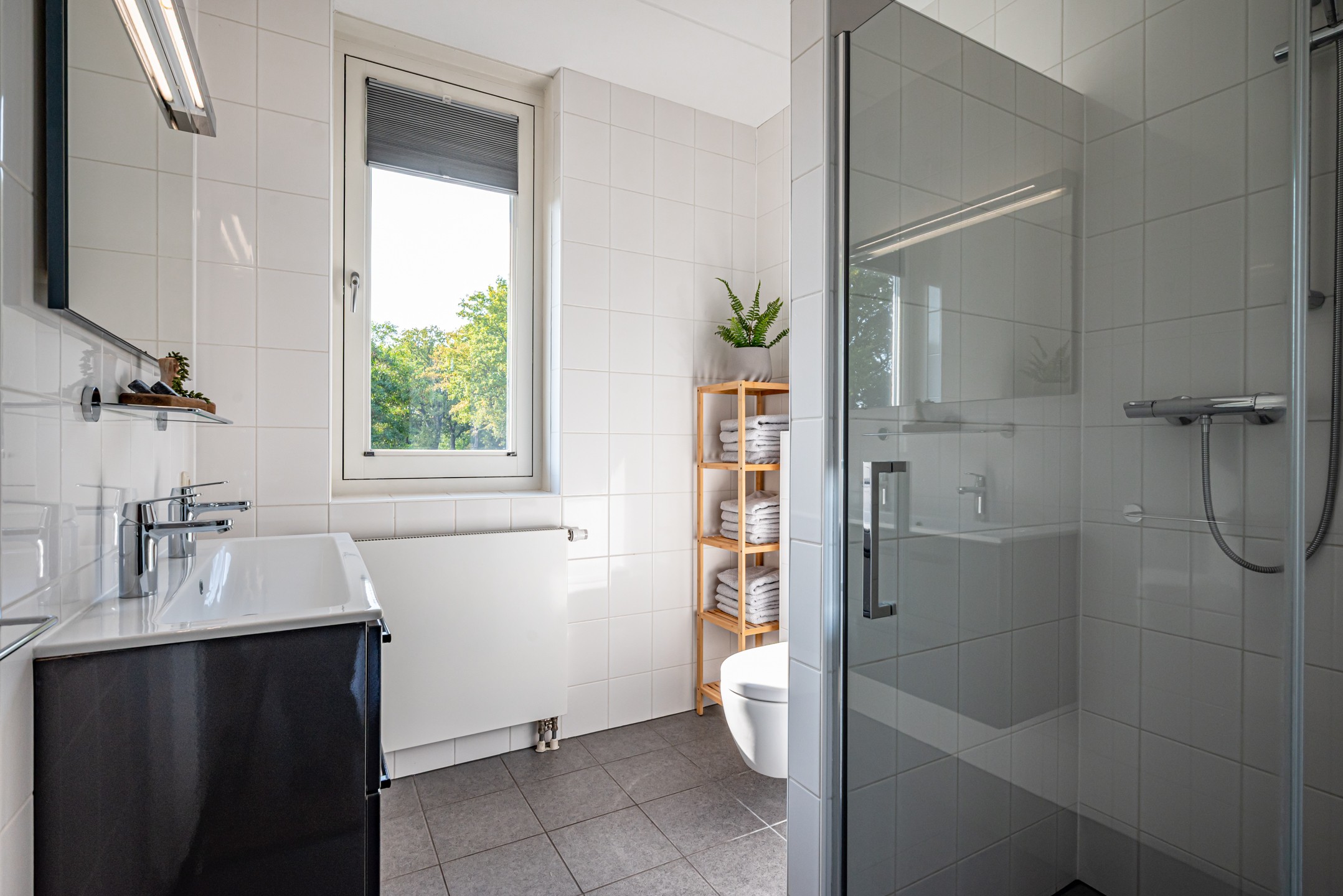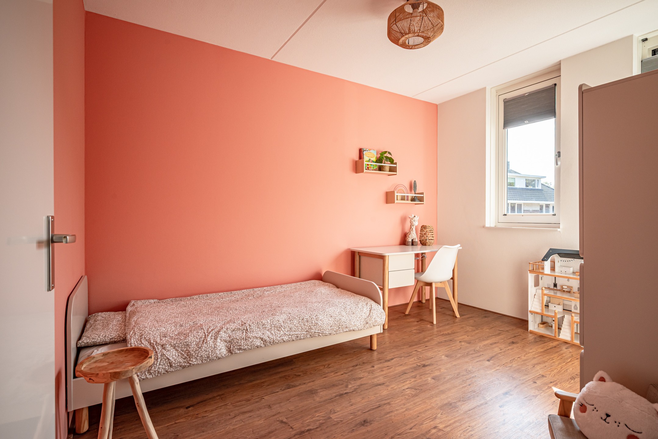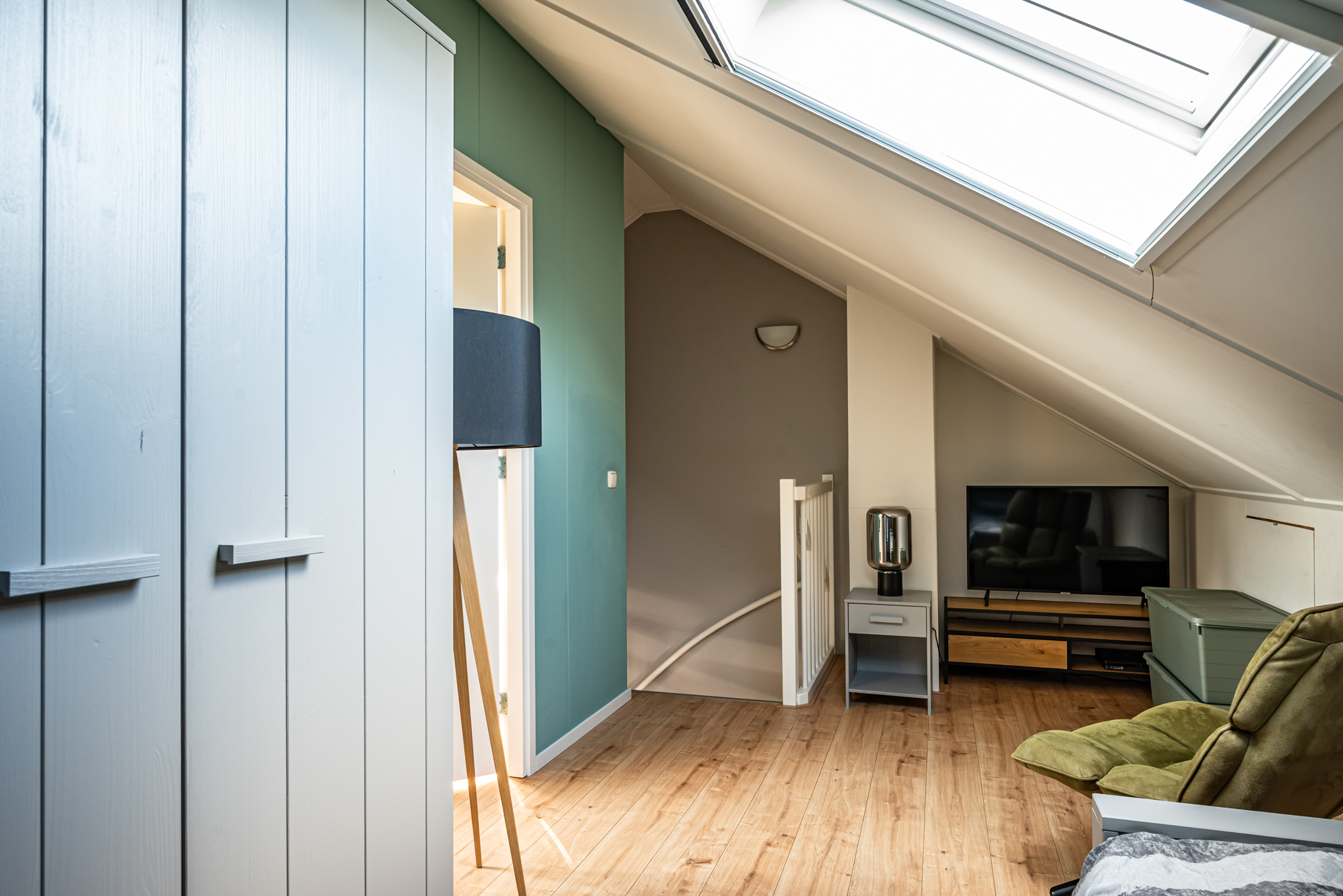 Tweede verdieping: eveneens bereikbaar middels vaste trap en afgewerkt met 2 kamers, waarvan 1 slaapkamer en 1 thuiswerkplek met was- en bergruimte. Door 2 royale dakramen is hier voldoende lichtinval. Een prachtige extra woonruimte!