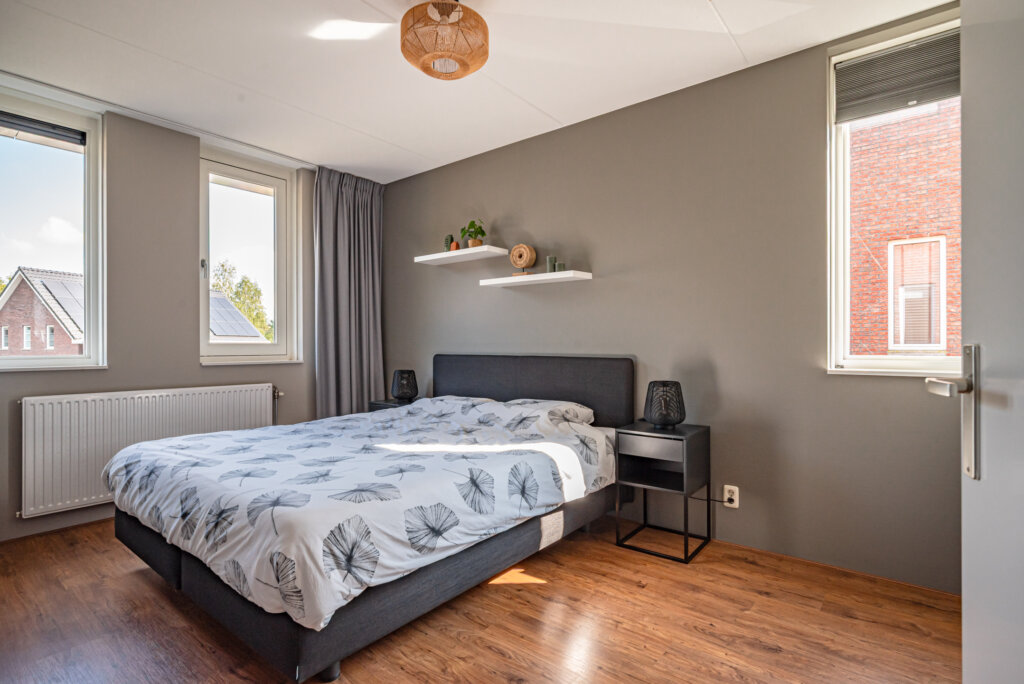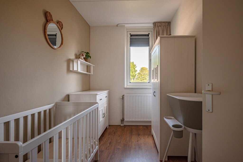 Tweede verdieping: eveneens bereikbaar middels vaste trap en afgewerkt met 2 kamers, waarvan 1 slaapkamer en 1 thuiswerkplek met was- en bergruimte. Door 2 royale dakramen is hier voldoende lichtinval. Een prachtige extra woonruimte!