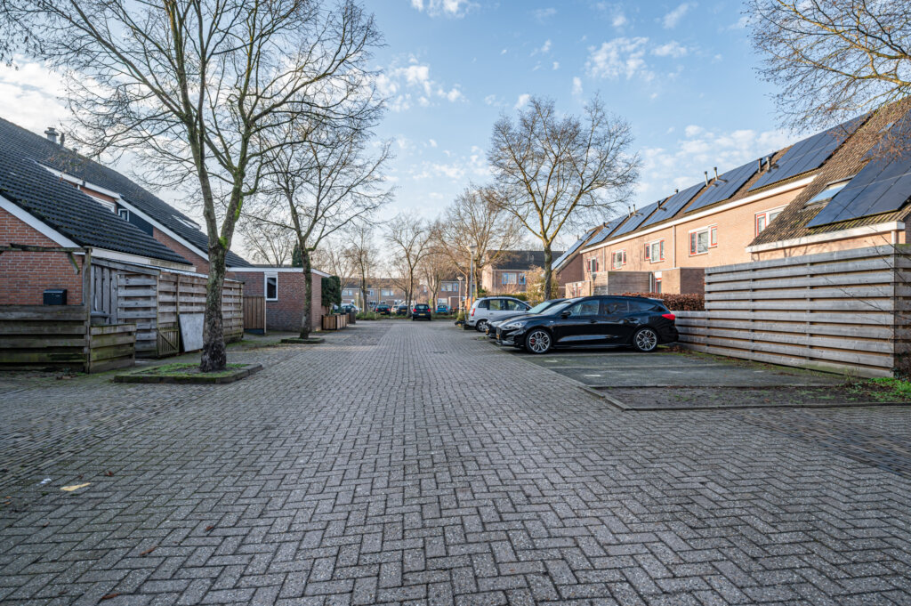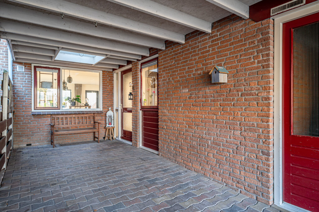 Aan de voorzijde van de woning bevindt zich een aangebouwde stenen berging, ideaal voor het stallen van fietsen en het opbergen van spullen.