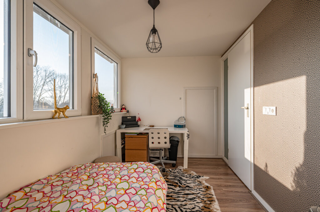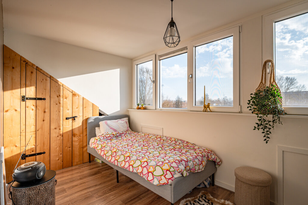 Tweede verdieping: De tweede verdieping is bereikbaar via een vaste trap. In 2019 is deze verdieping opnieuw ingedeeld, waarbij twee royale slaapkamers zijn gerealiseerd. Dankzij de dakkapellen aan zowel de voor- als achterzijde is er volop licht en extra leefruimte ontstaan.