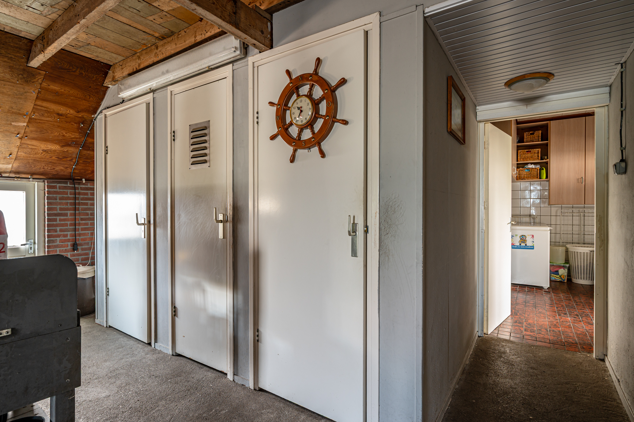 Begane grond: entree/hal met vaste kasten, toegang tot de bijkeuken met witgoedapparatuur die doorgang geeft aan de keuken. Deze keuken is voorzien van hoekopstelling met enige inbouwapparatuur. Hier is tevens de trapopgang naar de verdieping aanwezig. Aan de voorzijde bevindt zich de ruime woonkamer met zicht op 'de Diek'. In het voorhuis bevindt zich tevens een extra woongedeelte met keuken (voormalige inwoning). Richting het achterhuis zijn 2 slaapkamers, de badkamer (met wastafel, toilet en douche) en de inpandige berging/deel gesitueerd.